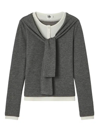 grey tied detail long sleeves round neck layered detail ribbed finish