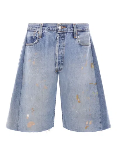 B SIDES Paint-splatter Frayed Shorts In Blue