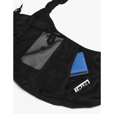 Womens Black Crescent Brand-patch Recycled-polyester Crossbody Bag