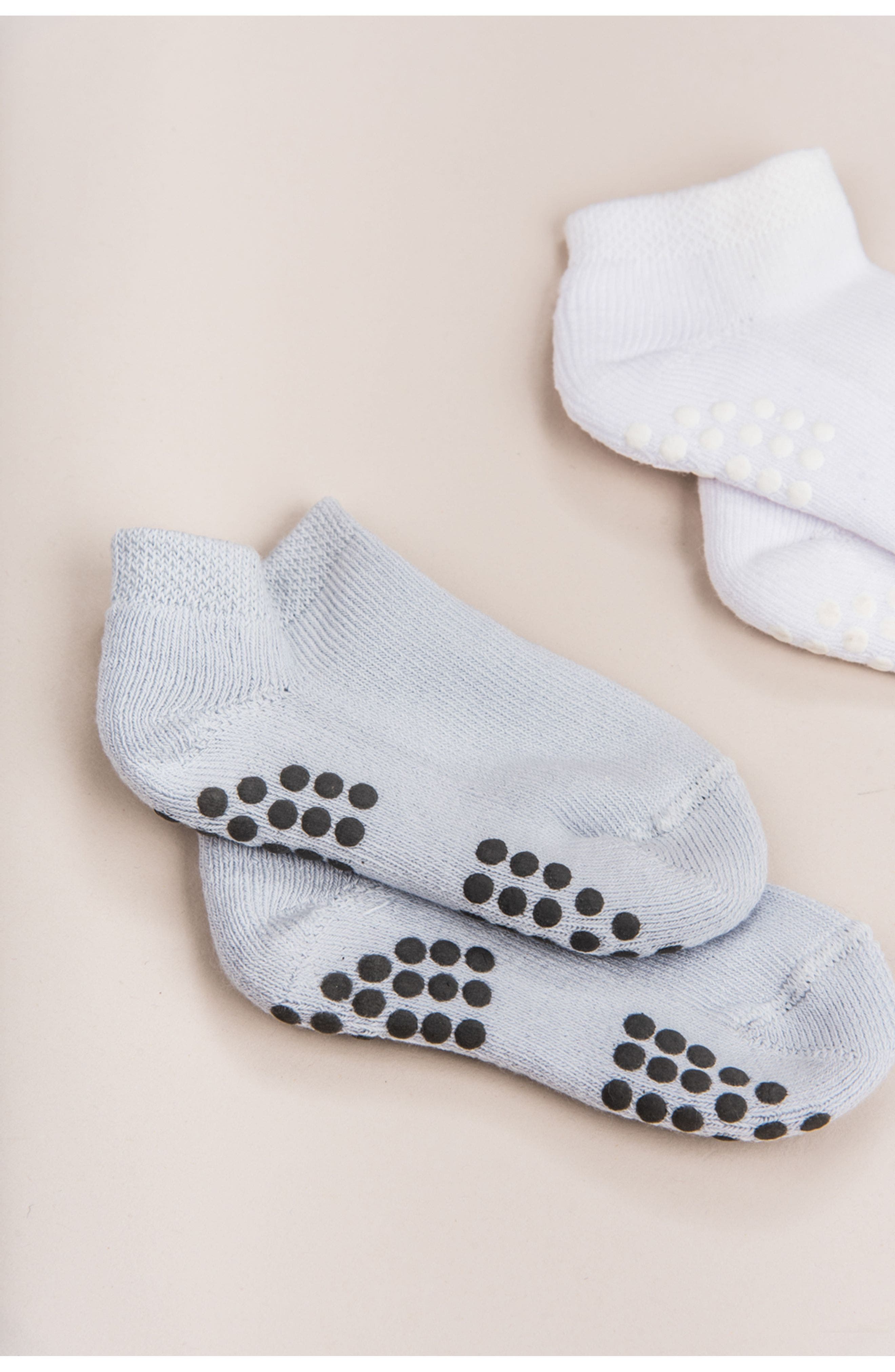 Keep your little one's feet stylish and comfortable with our adorable ankle socks! This set includes one pair of white socks and one pair of light blue socks. Perfect for everyday wear, these soft and cozy socks are a must-have for any baby's wardrobe. Includes one Tennis Sock 2-Pack Includes one Tennis Sock 2-Pack
