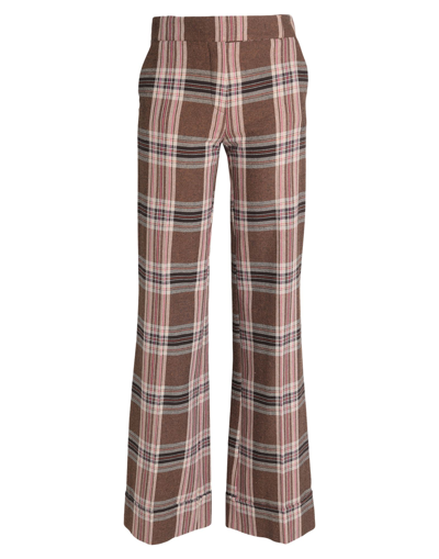 flannel, no appliqués, tartan pattern, mid rise, wide leg, regular fit, hook-and-eye closure, zipper closure, multipockets, cuffed hems , Color: Brown , Size: 4