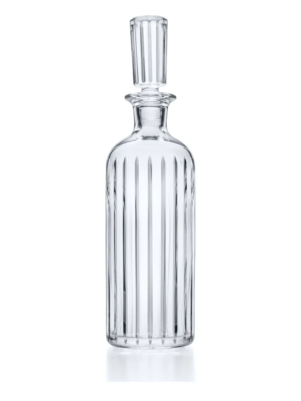 Clean, sweeping vertical grooves enhance the timeless elegance of this exquisite, thick-based crystal decanter. 12 1/2" height Holds 26.5 oz. Lead crystal Hand wash Made in France