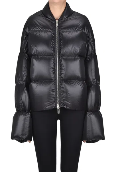 Bomber style down jacket, zip-fastening at front, extra long sleeves. Sample size: XS COMPOSITION: 100% Nylon (lining) 100% Nylon (padding) 100% Duck down Made in Romania