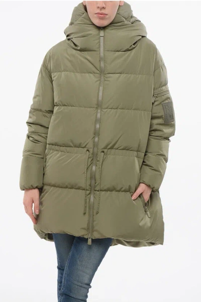 Multipocketed Cloud Down Jacket With Drawstringed Waist In Green