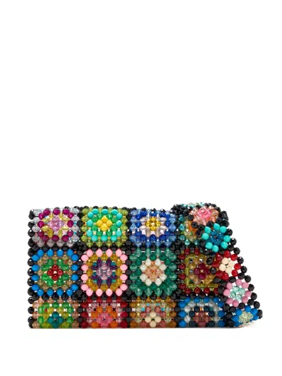 black multicoloured beaded patchwork design square-shaped gold-tone clasp