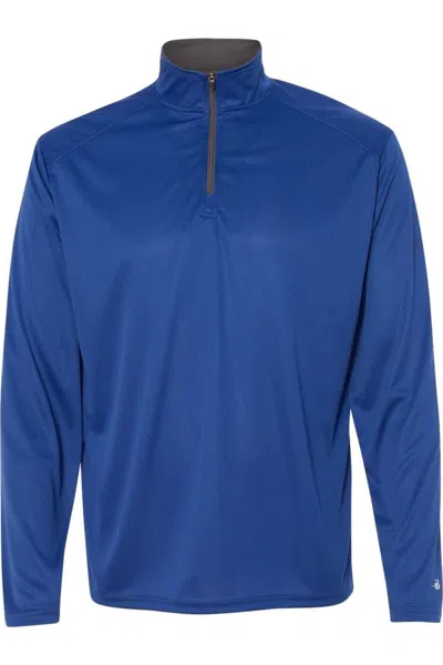 3.5 oz./yd2, 100% polyester moisture management/ antimicrobial fabric. Self-fabric collar with contrast-color interior. Contrast-color 8" locking zipper. Badger Sport coverstitched paneled shoulders for maximum movement. Badger heat-seal logo on left sleeve.
