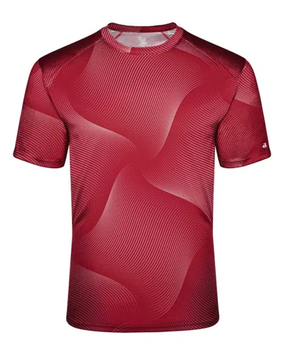 100% sublimated polyester moisture-management/antimicrobial performance fabric Badger sport shoulder for maximum movement Self-fabric collar Double-needle hem Badger heat-seal on left sleeve