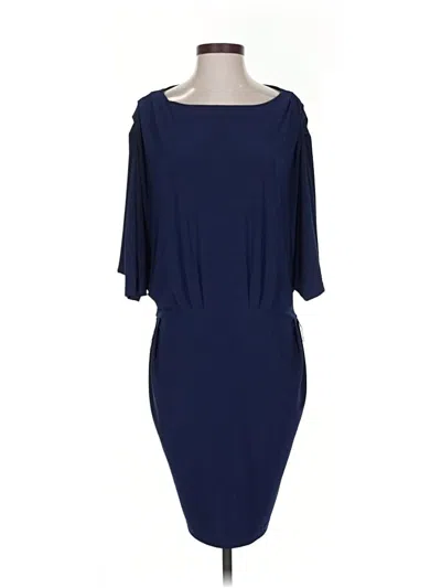 Badgley Mischka Cocktail Dress, Size: X-Small. Item Details: Blue, Solid Pattern, Sheath, Boatneck, Knee Length, 3/4 Sleeve, Women's Dresses, Polyester/Spandex