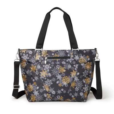 Thoughtfully designed to bridge the gap between fashion and function, the avenue tote is a must for on-the-go organization. A removable, adjustable strap lets you wear it your way, while the attached luggage handle sleeve is a must for convenient travel. Keep your essentials close at hand with a quick-access phone pocket and tackle the next trip comfortably with this travel tote's lightweight design. THE PERFECT CARRY-ON - With a lightweight, roomy design, baggallini's Avenue tote is the perfect bag for traveling or as a catch-all everyday purse. ZIPPERED POCKETS - A padded 10" by 13" laptop pocket keeps your computer safe, while other zippered pockets secure your must-have essentials so they're ready to go. MACHINE WASHABLE - To wash in a washing machine, remove wristlet, place in a washing bag or pillowcase, and wash in warm water with mild detergent. Stuff pockets to maintain shape while air drying. FITS ON LUGGAGE HANDLE - The Avenue tote has a sleeve that slips on the handle of your rolling suitcase for hands-free travel. LIGHTWEIGHT AND WATER RESISTANT - Our water-resistant travel tote weighs 1 lb., 4 oz. and measures 12" tall, 18" wide, and 5.5" deep with a 52" adjustable and removable strap.