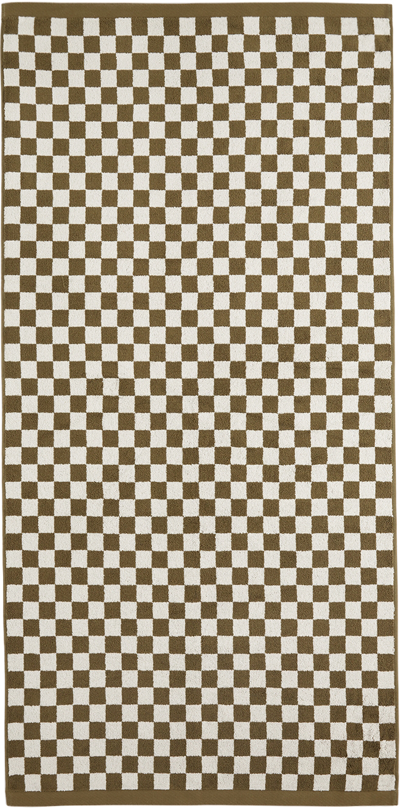 Rectangular organic cotton terrycloth towel featuring check pattern in green and off-white. Textile logo patch at face. H27 x W56.5 in Available exclusively at SSENSE. Supplier color: Olive & Ivory
