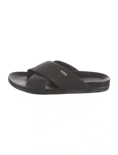 Baldinini Leather Slides Black Crossover Straps Unfortunately, due to restrictions, this item may not be eligible for shipping in all areas. | Baldinini Leather Slides in Black, Men's 10
