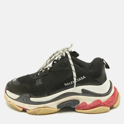 Pre-owned Black Faux Leather And Mesh Triple S Sneakers Size 38