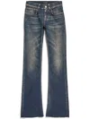 Balenciaga's bootcut jeans combine style and comfort. Made from blue denim, they offer a modern silhouette and a versatile cut. Their fit adapts to various occasions, making them a must-have for any wardrobe. Discover them now and enhance your look with a touch of elegance.