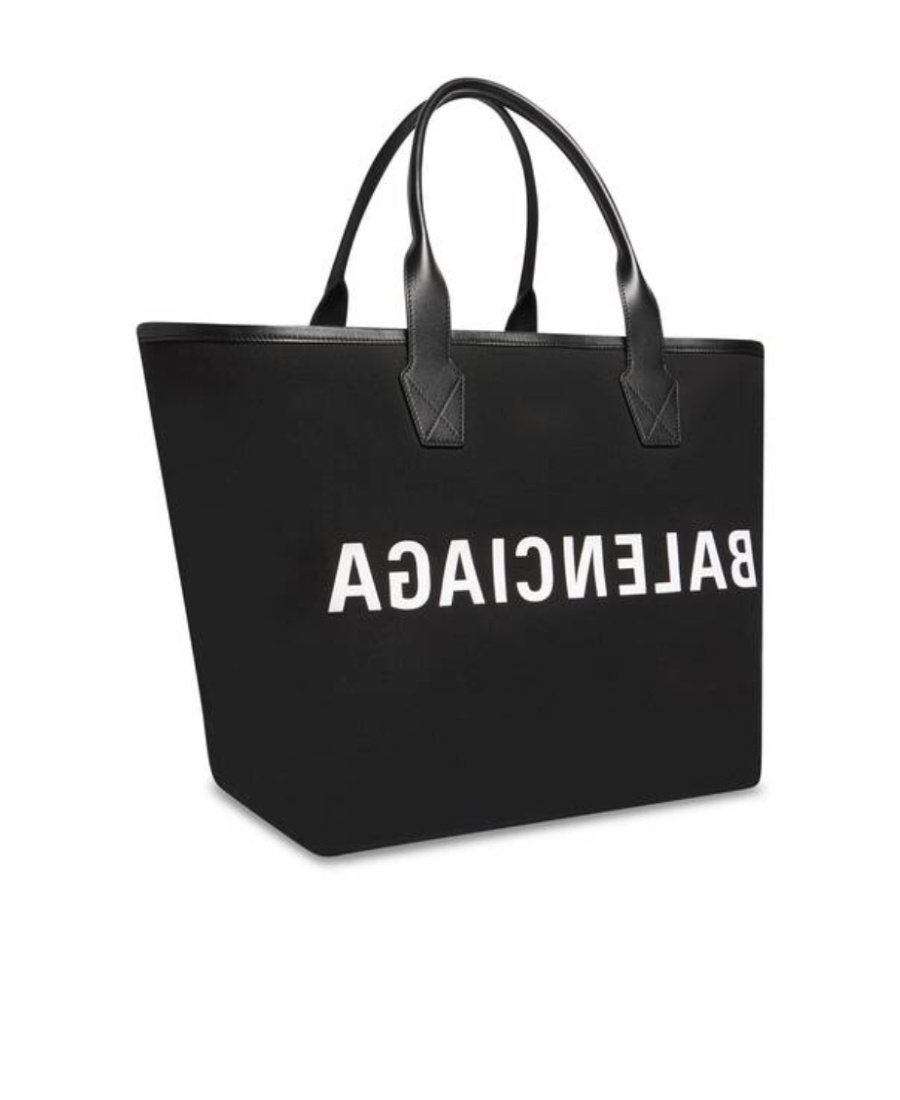 Borsa Tote Jumbo Grande in tela di cotone nera e bianca Dimensioni L 34 8 x H 65 8 x P 11 9 cm Tela di cotone Borsa tote Due manici Logo Mirror Balenciaga stampato davanti Finiture in oro anticato Apertura in alto 1 tasca interna con cerniera 1 tasca interna applicata 1 portachiavi interno con logo Balenciaga inciso Fodera in tela di cotone Made in Italy Passare con un panno morbido Materiale 100 cotone