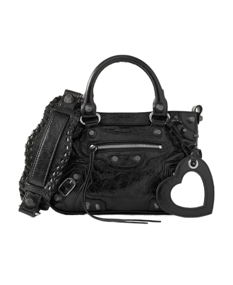 Borsa Tote Neo Cagole Piccola in pelle di agnello Arena nera con finiture argento anticato Dimensioni L 23 8 x H 29 2 x P 5 cm Pelle di agnello Arena Borsa tote Due manici in pelle intrecciati a mano Tracolla regolabile e removibile luce 29 9 cm Finiture argento anticato Rinforzo in pelle intrecciata sulla spalla Chiusura con zip e tiralampo in pelle annodata Tasca anteriore con zip e tiralampo in pelle annodata Tasca interna con zip Specchietto a cuore removibile Specchietto con logo Balenciaga tono su tono goffrato Fodera in tela di cotone Fabbricata in Italia Pulire con un panno morbido Materiale 100 pelle di agnello