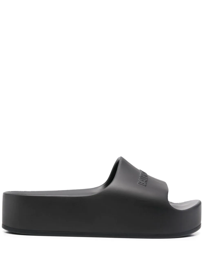 Rubber slip-on sandals in black. Open round toe. Logo embossed at vamp. Molded foam rubber footbed. Tonal rubber platform midsole. Tonal treaded rubber sole.Supplier color: Black