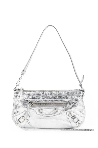 In Arena Storico lambskin, the pouch reinterprets Balenciaga s iconic moto aesthetic with a compact, architectural silhouette. Metal studs and buckles sharpen its edge, while removable handles and an adjustable strap offer versatile wear. Functional details such as the zip closure, front pocket, and six internal card slots anchor the design in practical precision.silverarena storico lambskinmetal studs and bucklesremovable top handleadjustable and removable shoulder strapzip closurefront zipped pocketcotton canvas lining6 internal card slots