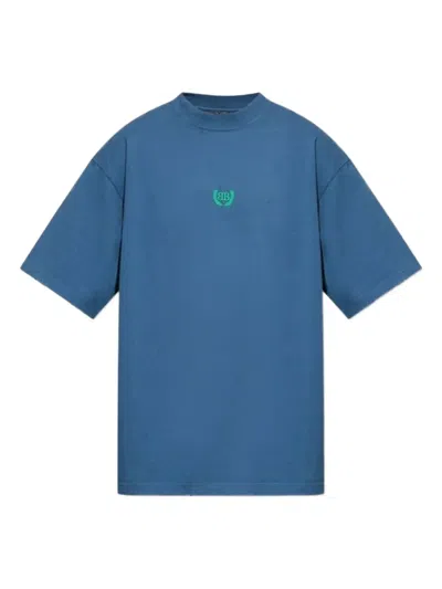 BALENCIAGA Laurel Classic T-shirt in blue dry jersey with a crew neck and a medium fit.