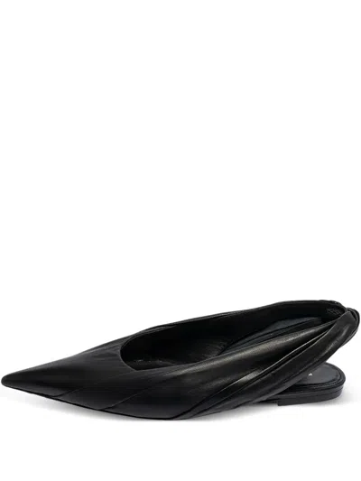 black deep v-cut design pleated detailing low heel slip-on style Condition: GOOD. This previously owned and used item is in good condition with minimal signs of use. This may include fading of material or plating and scratches.