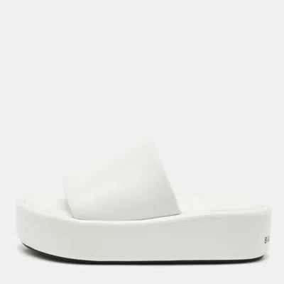 Pre-owned White Leather Rise Platform Slide Sandals Size 38