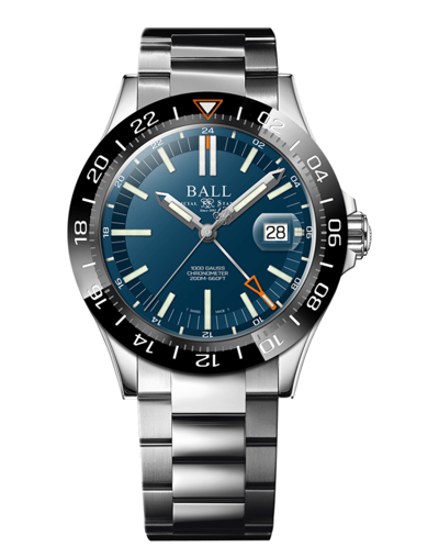 Brand: BALL ENGINEER III OUTLIER GMT REF: DG9002B-S1C-BE Functions: LIMITED EDITION TO 1000 UNITS CHRONOMETER COSC CERTIFIED GMT QUICK SET LOCAL 12- HOUR HAND SWISS AUTOMATIC MOVEMENT (CALIBER BALL RRM7337-C) 904L STAINLESS STEEL CASE AND BRACELET BIDIRECTIONAL ROTATING BLACK CERAMIC BEZEL MU-METAL SHIELD CASE SIZE 40MM LUG TO LUG 46.6MM HEIGHT 13.8MM ANTI-REFLECTIVE SAPPHIRE CRYSTAL WATER RESISTANCE TO 200 METERS BLUE DIAL MICRO GAS TUBES ON MARKERS AND HANDS SCREWED-IN CROWN SCREWED CASE BACK CYCLOPS DATE Packaging BALL WATCH Box with Factory Supplied Booklets Condition Brand New Sealed Package Warranty 4 Year Authorized Warranty from BALL