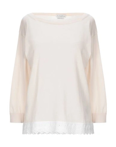 BALLANTYNE Sweaters. lace, knitted, no appliqués, solid color, round collar, lightweight sweater, 3/4 length sleeves, no pockets. 100% Cotton