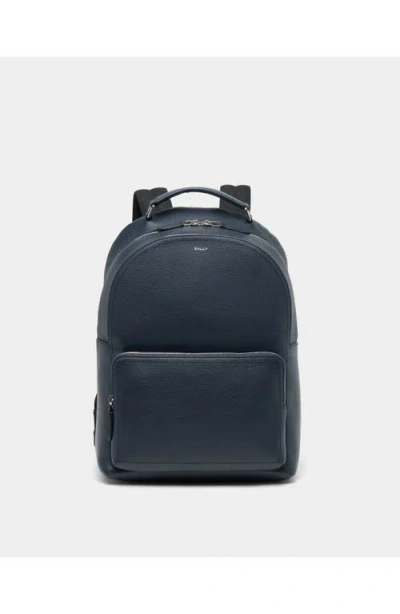 The Capitol backpack in grained leather features an essential silhouette with a front pocket, top handle and a foil Bally logo. Grained calf leather Palladium-hue metal hardware Foil Bally logo Top handle Luggage sleeve on the back Double zippers Front zipped pocket