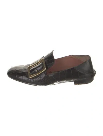 Bally Embossed Leather Mules Black Semi-Pointed Toes Designer Fit: Flats by Bally typically run a half size small. | Bally Embossed Leather Mules in Black, Women's IT 38 | 8