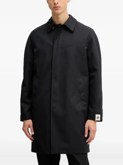 navy blue classic collar button fastening long sleeves side welt pockets logo patch