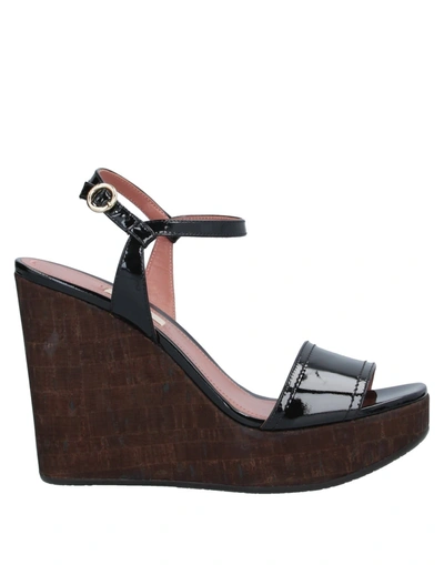 BALLY Sandals. varnished effect, no appliqués, solid color, buckling ankle strap closure, round toeline, wedge heel, leather lining, rubber sole, contains non-textile parts of animal origin. Lambskin