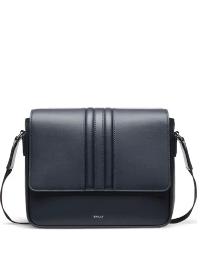 dark blue flap closure with magnetic fastening embossed detail adjustable shoulder strap main compartment logo lettering