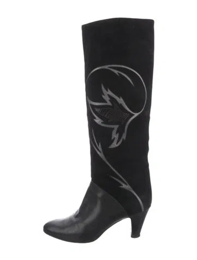 Bally Suede Knee-High Boots Black Semi-Pointed Toes | Bally Suede Boots in Black, Women's 7.5