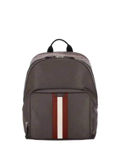 BALLY Zip Striped Backpack In Brown