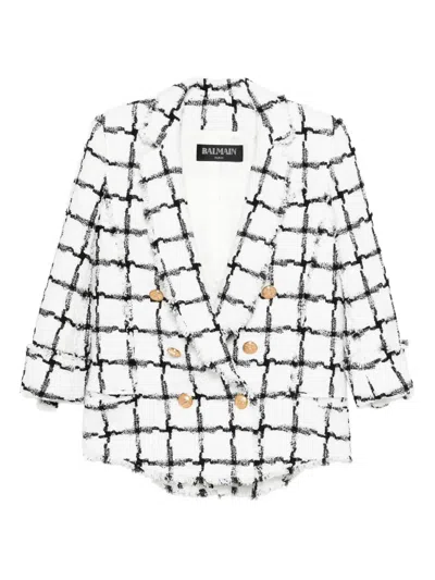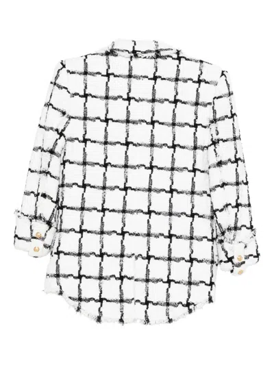 circa 2010s black grid pattern gold buttons frayed hem textured weave long sleeves Condition: EXCELLENT. This previously owned item is in near-perfect condition with no signs of damage or use.
