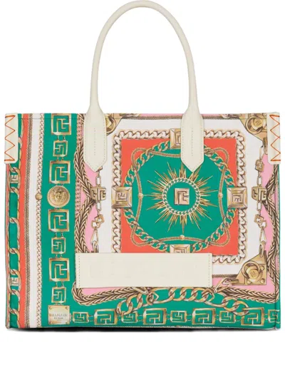 BALMAIN B-army Medium Tote Bag In Printed Canvas In Multi