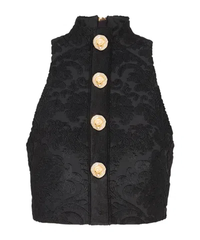 BALMAIN Baroque Pattern Buttoned Top In Black