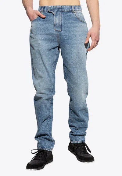 Material: 100% cotton. Zip and press-stud closure under a placket. Belt loops. Three front pockets. Two back patch pockets. Back logo patch. Made in Italy