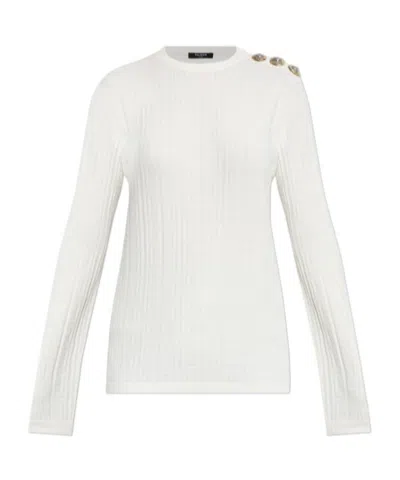 BALMAIN Beige Viscose Polyester Sweaters In White