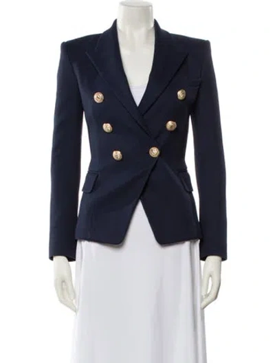 Balmain Blazer Blue Pointed Collar Button Closure Designer Fit: Designed for a slim fit, those with a curvy figure may wish to take one size up. | Balmain Blazer in Blue, Women's US2, FR34 | XS