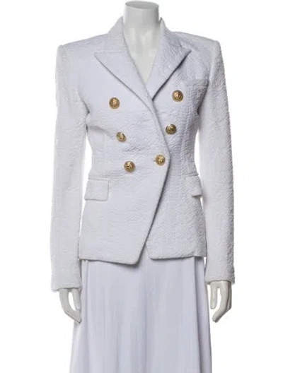 Balmain Blazer White Pointed Collar Flap Pockets & Double Breasted Designer Fit: Designed for a slim fit, those with a curvy figure may wish to take one size up. | Balmain Blazer in White, Women's US4, FR36 | S