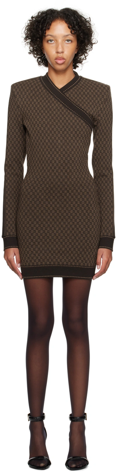 BALMAIN Brown Mini Monogram Minidress In Wfp Marron/marron