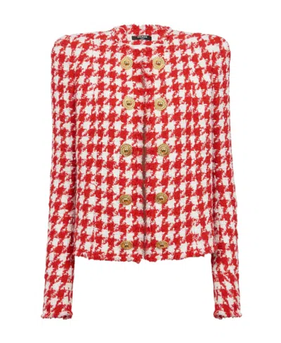 BALMAIN Button-embelllished Houndstooth Tweed Jacket In Multi