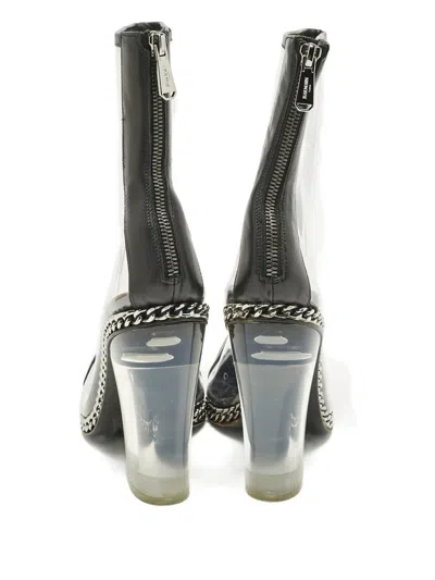 black chain trim cap toe block heel rear zip fastening This piece comes complete with a protective dust bag. Condition: GOOD. This previously owned and used item is in good condition with minimal signs of use. This may include fading of material or plating and scratches.