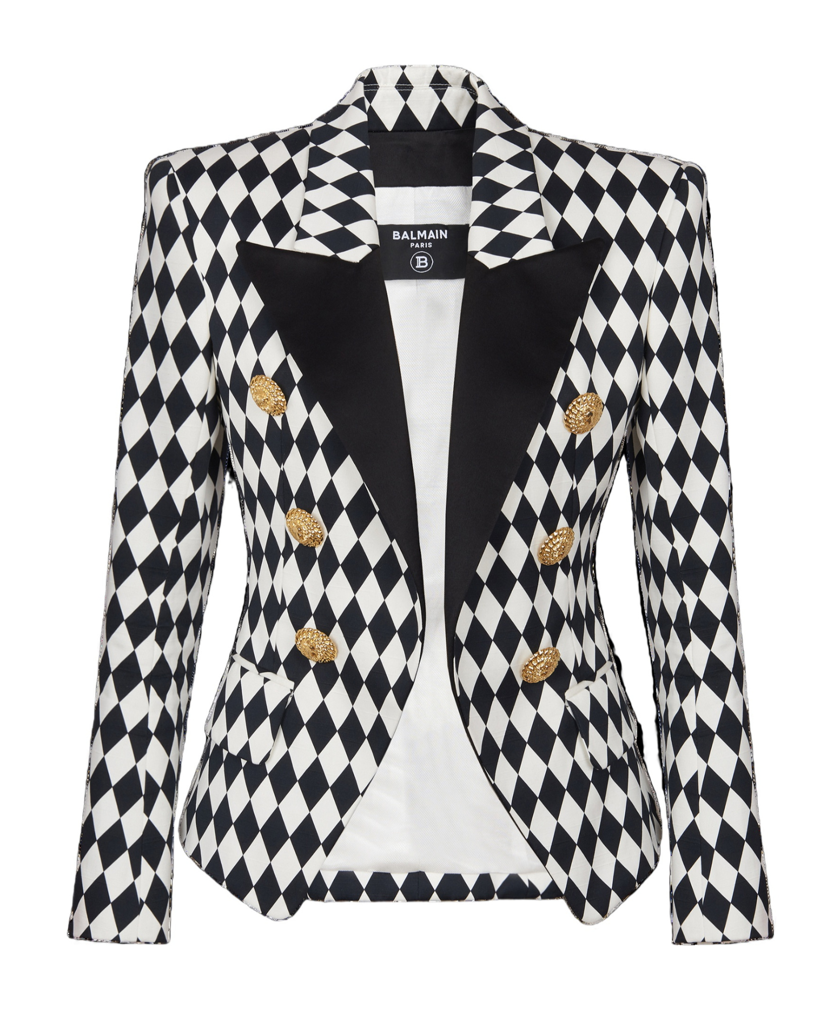 BALMAIN Diamond-print Peak-lapel Blazer In Multi