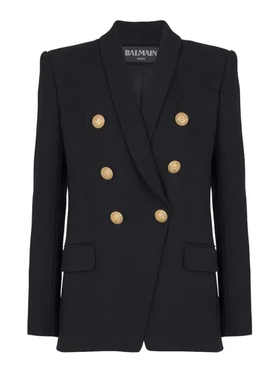 BALMAIN Double-breasted Wool Jacket Featuring Peak Lapels In Black
