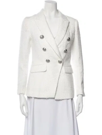 Balmain Down Blazer White Pointed Collar Flap Pockets Designer Fit: Designed for a slim fit, those with a curvy figure may wish to take one size up. | Balmain Down Blazer in White, Women's US2, FR34 | XS