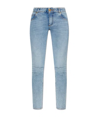 BALMAIN Faded-wash Button-embellished Jeans In Blue