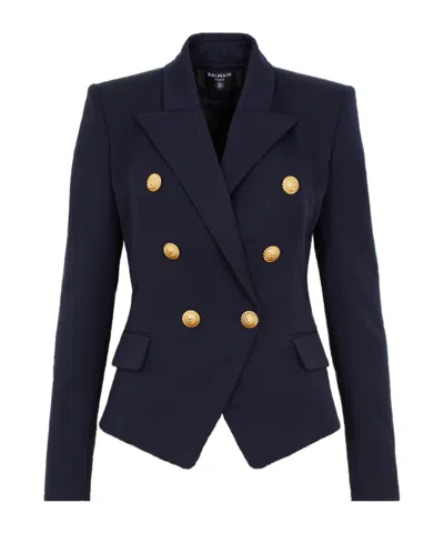 BALMAIN Fitted Wool 6-buttons Jacket In Blue