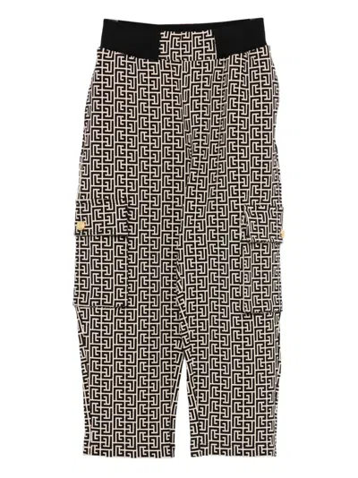 BALMAIN Kids' Geometric-pattern Cargo Trousers In Black