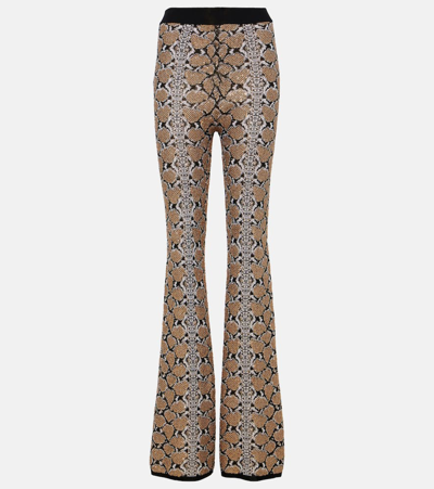 BALMAIN Glittered Python Knit Bootcut Pants In Brown